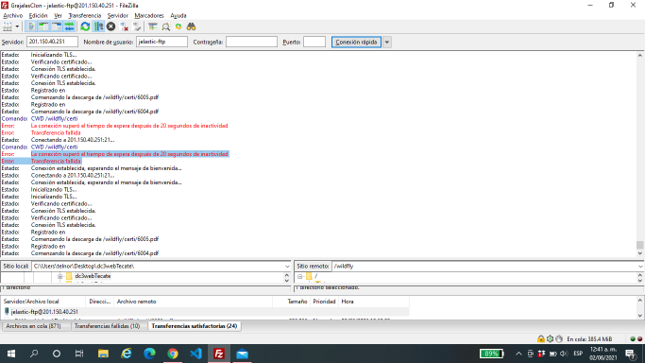 - El cliente se comunica para reportar conexión FTP fallida ya que se está tratando de realizar una conexión ftp con el ambiente dc3-2020-Grajales-clone398315, pero se genera una excepción.