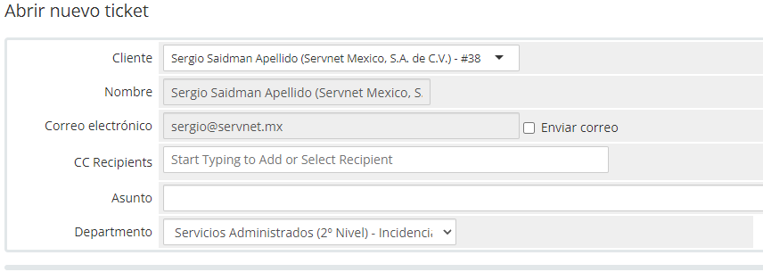 Una vez proporcionada esta información se genera el ticket como un requerimiento a nombre de SERVNET y se asigna al área de servicios administrados.