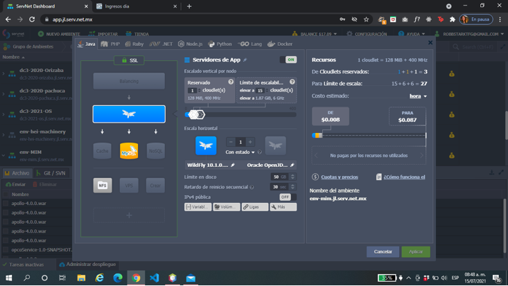 - Uno de los requerimientos que puede solicitar un cliente es un cambio en el servidor env-mim.jl.serv.net.mx , un aumento en limite en disco a 250Gb.